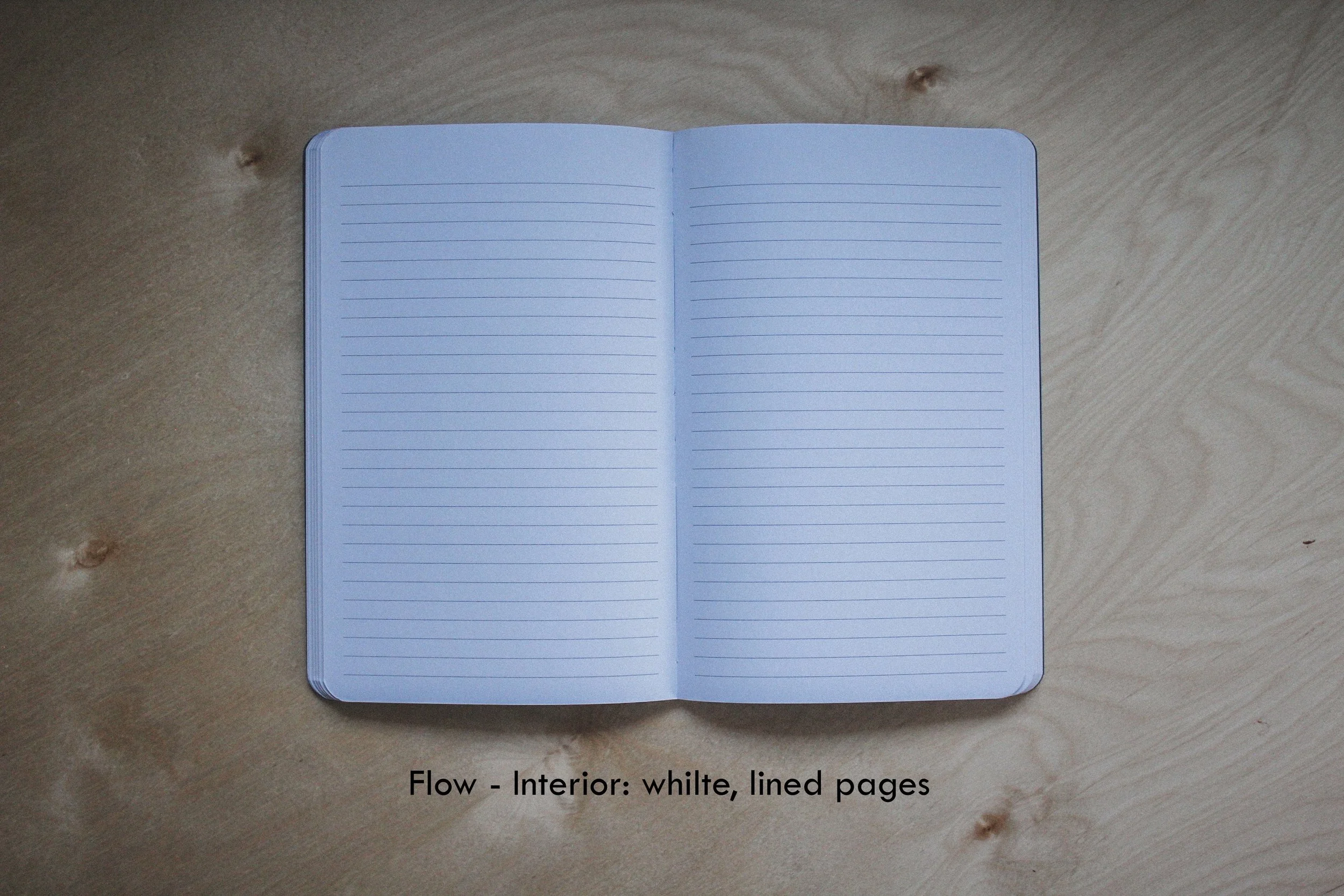 Lined, 100gsm bleed-free, recycled paper (Flow: crisp white paper, Grow: toned paper)